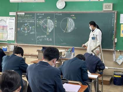 3年生の理科の授業では、「南中高度」について学習しました。(写真上)