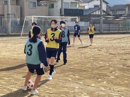 3年生の女子の体育では、サッカーをしました。全国高等学校サッカー選手権大会で盛り上がっているところですが、安中の生徒も気合だけは負けていません。懸命にボールを追いかける姿は、青春そのものです。