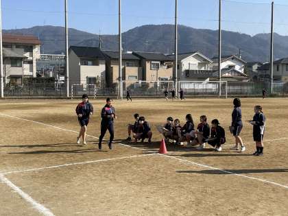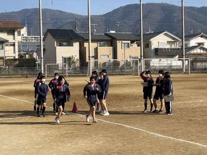 女子の体育の授業で持久走が始まりました。2人でペアを組んで、走らない方の人が1周ごとのラップを記録していきます。1周ごとに「頑張れ!」という応援の声に励まされて一生懸命に走りました。