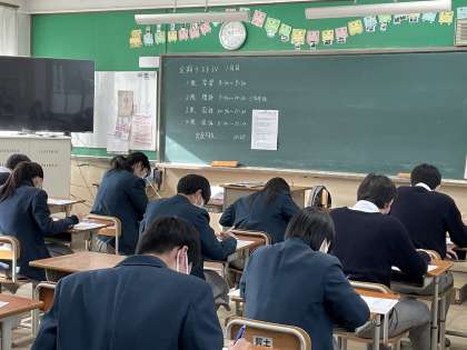 1月18日(水)〜20日(金)の3日間、3年生の定期テスト4が実施されます。中学校での最後の定期テスト、生徒たちは集中して精一杯頑張っています。