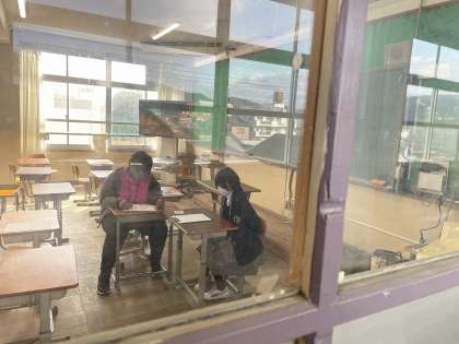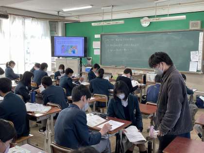 1年生の英語の授業では、ALTの先生によるスピーキングテストを行いました。(写真上)