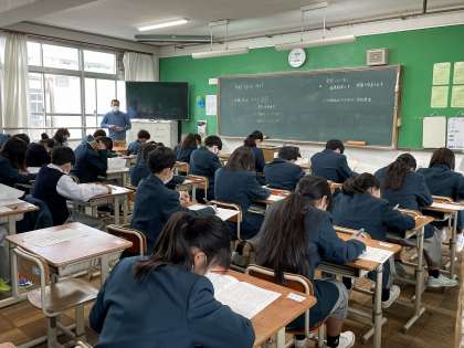 1年生は、国語と数学のジョイントプログラムを実施しました。小学校でも経験しているテストですが、中学校で初めてのテストとあって生徒たちは皆、緊張した面持ちで真剣に取り組んでいました。