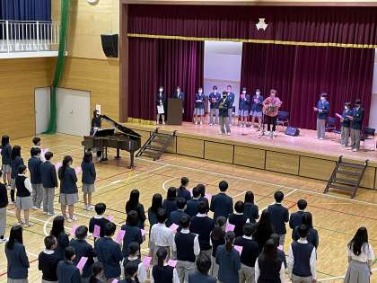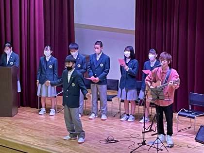 安祥寺中学校は、令和4年度で創立50周年を迎えました。創立50周年記念事業として、生徒会を中心に全校生徒から「歌詞に入れたい言葉」を募集し、