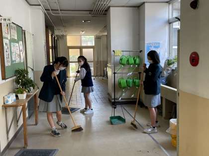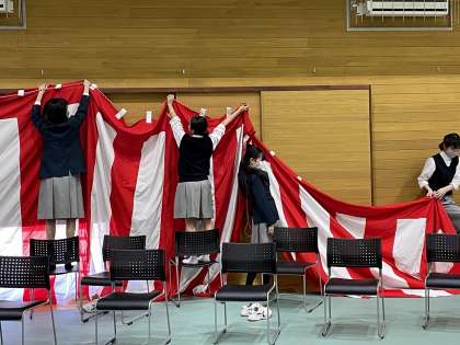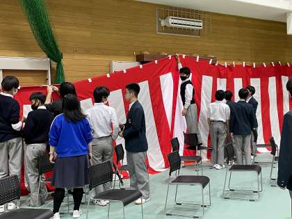 明日は、安祥寺中学校創立50周年の記念式典です。会場準備や校内美化を2年生の生徒が担当してやってくれました。