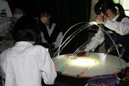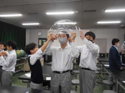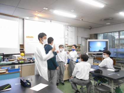 プラネタリウム学習では、今夜の星空や星座を鑑賞して「金星の動き方と見え方」について学習をしました。その後、各クラス毎に実験室学習をしました。