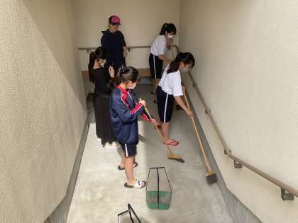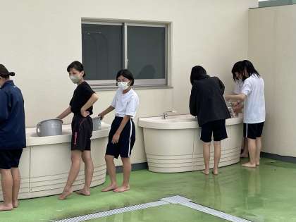 まもなく始まる体育の水泳授業に先立って,6月7日(水)の放課後にプールの清掃を行いました。ボランティアで女子バスケットボール部と男子バスケットボール部がお手伝いをしてくれました。