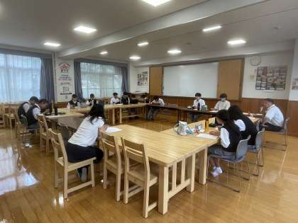 生徒会本部の生徒たちは、週に1度、昼食を摂りながらのランチミーティングを行っています。今日は校長先生にも参加していただいて、明日の「生徒総会」や「Singの日」について話し合いました。