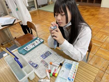 4組の美術の授業では、粘土で作って焼き上げた動物の彩色を行いました。(写真下)