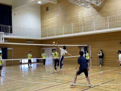 3年生男子の体育の授業では、バレーボールに取り組んでいます。ジャンピングサーブ、アタック、ブロック・・・etc、さすが3年生男子!ハイレベルな戦いが繰り広げられています。