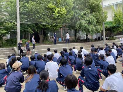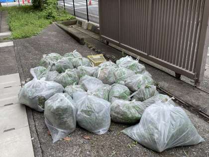 生徒たちは暑さやテスト疲れにも負けず、一生懸命に清掃活動に取り組みました。集まった草やゴミは、全部で40袋もありました。