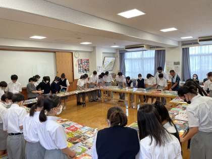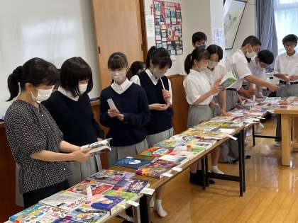 7月5日(水)、新しく図書館に入れる本を選ぶ『選書会』を行いました。選書を生徒自身が行うことによって、本に興味を持ち図書館の活用を推進することを目的としています。クラスごとに時間を設定して全校生徒が参加し真剣に本を選んでいました。