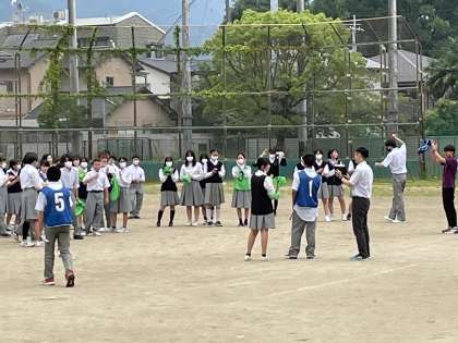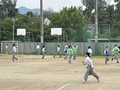 7月3日〜5日に実施した生徒会Weekで、体育委員会の「昼休みに縦割りで遊ぶ」取組が3組だけ雨天で延期になっていました。本日昼休みに各学年の3組が集まって「ケイドロ」をしました。暑い中、短時間ではありましたが、「思いっきり追いかける」「全力で逃げる」男女や学年の枠を超えて楽しく遊ぶことができました。