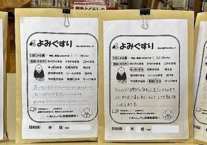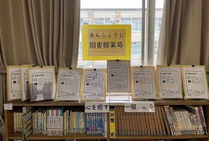 9月4日(月)から始まった『生徒会Week』の文化図書委員会の取組は、『読み薬Week』です。「わくわくしたい時」や「落ち込んだ時」など、気分に合わせて読める本を図書委員が選んで詰合せ袋にしたものを貸し出します。「どんな本が入っているか?」袋を開ける時からわくわくしそうな取組です。