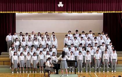 1年生の学年合唱曲は、4月から長い期間をかけて歌いこんできた「We'll Find The Way」。初めての合唱発表会、1番手で緊張もあったと思いますが、1年生の元気あふれるエネルギーと明るさが伝わる合唱でした。(写真上)