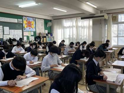 10月11日(水)・12日(木)の2日間、全学年で学習確認プログラムを実施します。今日は3教科が行われ、どの学年の生徒も真剣に取り組んでいました。