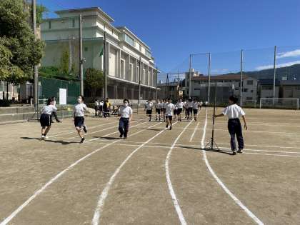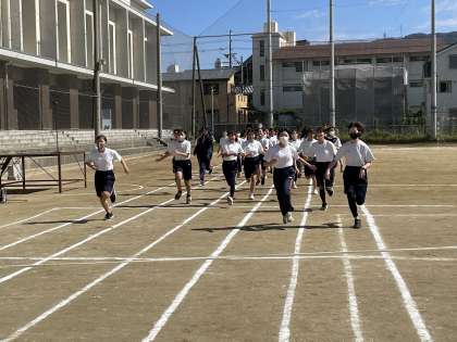 100M走は、時間短縮のために今日はみんなで走る場面もありました。