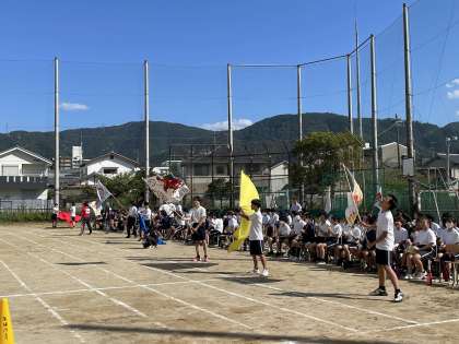 色別の応援も、3年生の団長を中心にとても盛り上がりました。今日は予行でしたが、皆一生懸命走って応援して全校で楽しめました。来週の本番が楽しみです。