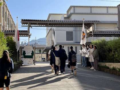 PTA役員の保護者の方によるあいさつ運動で、生徒達に体育大会への激励をしていただきました。
