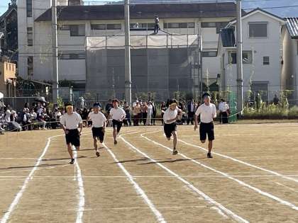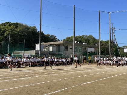 ゴール付近では、決勝審判の係の生徒から、自分の色に関係なく「頑張れ!」の声援が掛かります。