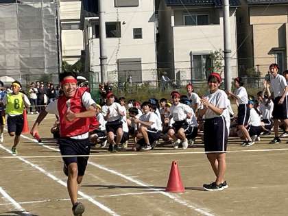 各クラス男女各4名ずつ計8名が、1人1週ずつトラックを走ります。本日最後の種目になるので、各クラス、各色の威信をかけて精一杯応援しました。