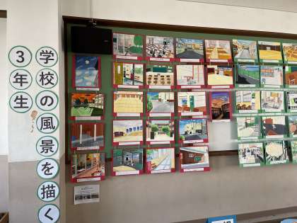 1年生は「彫刻作品」(写真上)、2年生は「学内のヒストグラム」(写真中)、3年生は「学内の風景画」(写真下)です。
