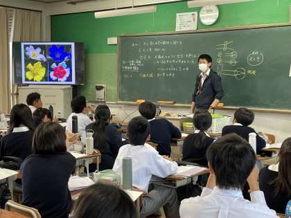 1年生の理科の授業では、「光と見える色の関係」について学習しました。(写真上)