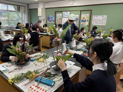 同じ花材でも、一人一人違う個性あふれる作品に仕上がりました。「ほんもの」を体験することを通して、伝統文化の良さを知り、草木の生命の大切さを改めて感じ、「いけばな」の楽しさを感じることができたのではないでしょうか。