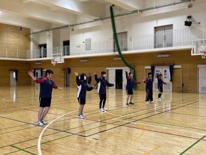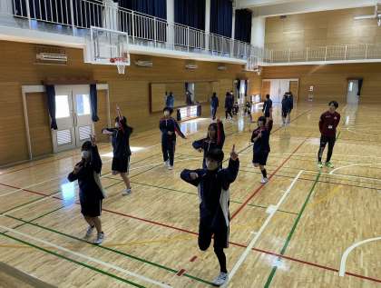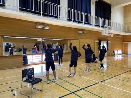 3年生女子の体育では、全学年とも創作ダンスに取り組んでいます。本時は、基本のダンスのテストの後、グループ毎の創作ダンスの練習に励みました。