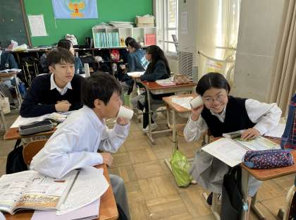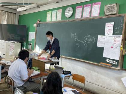 1年生の理科の授業では、「音の性質」について学習しました。生徒たちは、紙コップのばね電話やレインボースプリングを使っての体験に興味を持ち、楽しく学習に取り組んでいました。