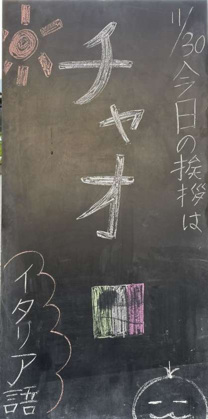 本校では、毎朝校門で生徒と教職員による『あいさつ運動』を実施しています。今朝のあいさつ運動の担当は生徒会本部です。生徒会本部が担当の日は、日本各地の方言や世界の言葉で「おはよう」を言う取組をしています。