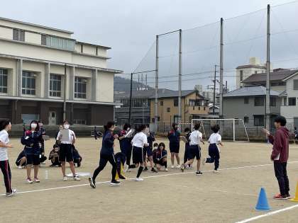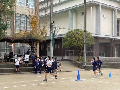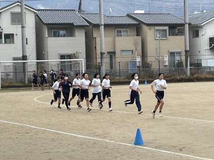 体育の授業では、全学年とも持久走に取り組んでいます。本日の2年生の授業の様子です。前半後半の2回に分けて走りますが、走らない生徒が1周ごとのラップタイムを記録します。「頑張れ!」という応援の声に励まされて一生懸命に走る姿が印象的でした。