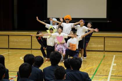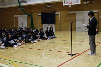 1年生の学年集会では、「2学期の振り返り」について、各クラスからと学年からの発表がありました。