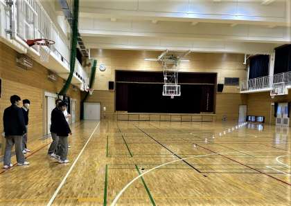1年生の理科の授業では、「ソニックフラッシャー」というセンサーを使って、音を光に変換する実験を行いました。広い体育館の対角線上に並べられたセンサーが、手拍子や足音、声に反応して光るのを興味津々で見つめ、その都度歓声が上がりました。