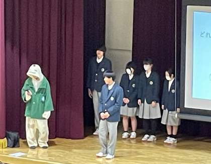 途中、創立50周年記念キャラクターのアンショウオ君から「声が小さい!」「元気がない!」と喝を入れられる場面がありましたが、その後は頑張って歌って最後には「みんな良かったよ」と言ってもらえました。