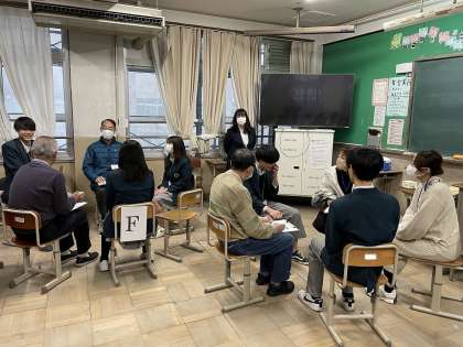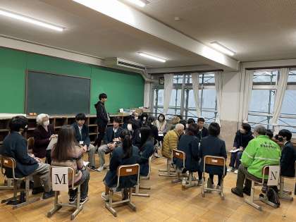 2月5日(月)午後、中学生と地域の人が語らう「ふれあいトーク安祥寺」を4年ぶりに開催しました。今回は、5〜6名の中学2年生のグループに大人の方2〜3名が入り、色々なテーマについて話をしました。