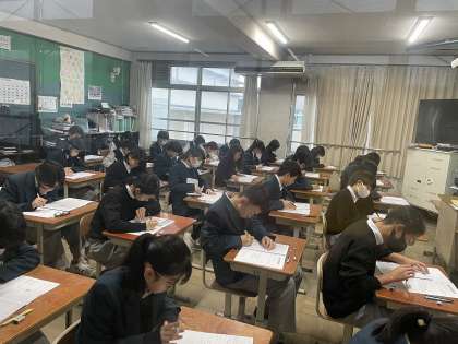 2月20日(火)から22日(金)の3日間、1・2年生の定期テスト4が実施されます。いつもより早く登校して、テスト直前の対策に取り組む生徒の姿も多く見られ、学年末の最後のテストに前向きに挑んでいます。