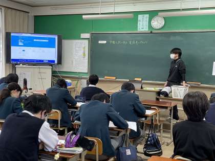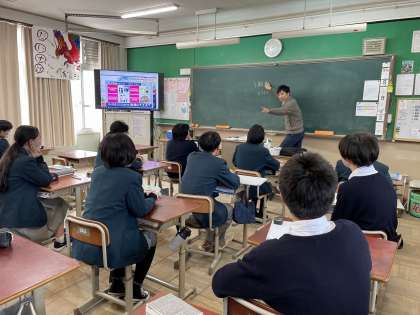今日が3年生にとって、中学校生活最後の教科の授業となりました。授業の最後には、お世話になった先生に生徒たちからメッセージが贈られました。