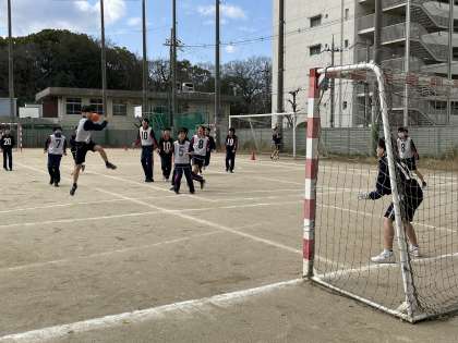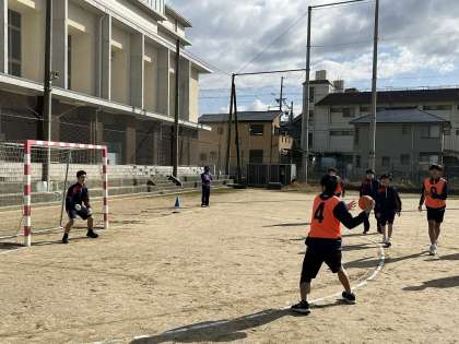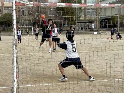 3月7日(木)1・2時間目に2年生の球技大会が行われました。男子はグランドでハンドボールをしました。鋭いシュートで点数を奪い合う白熱したゲームに、クラスの仲間と声を掛けながら大いに盛り上がりました。