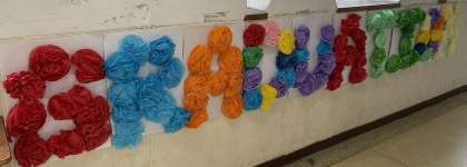 3月13日(水)卒業式を明後日に控え、3年生を送る会が行われました。朝登校すると、3年生のフロアには、壁や天井に綺麗な飾りつけがされていました。