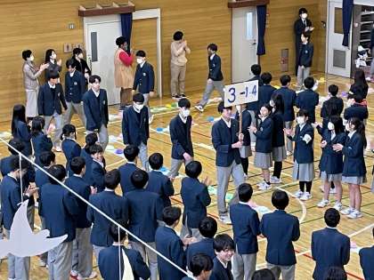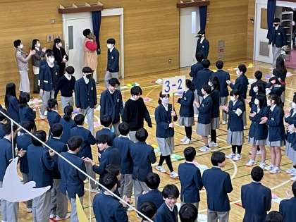 プラカードを先頭に3年生が入場すると、会場は大きな拍手に包まれました。