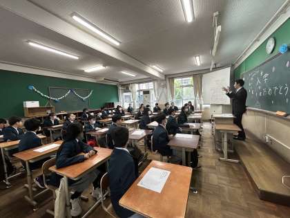 緊張した入学式とは一変、初めての学活では、担任の先生や新しい仲間とも少し打ち解けた和やかな雰囲気で行われました。明日から始まる中学校生活が楽しみです。
