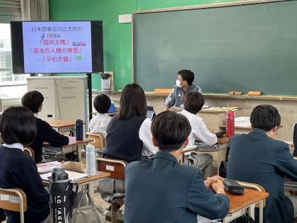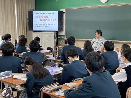 5月3日の憲法記念日にちなんで、1時間目に校長先生からの「憲法講話」がありました。「日本国憲法」についてのお話にはじまり、安祥寺中学校の「学校教育も目標」についてのお話もありました。相手を「思いやる気持ち」「気遣う気持ち」についても考える時間となりました。
