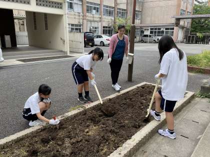 5・6組では、毎年作物を栽培している畑を耕しました。