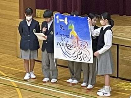 どのクラスの学級旗も、クラスの目標と思いがこもった素敵なデザインです。この旗のもと、クラスが団結していろいろなことにチャレンジしていってほしいです。