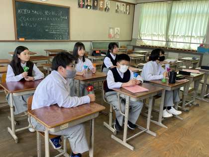本日正午過ぎ、中庭にハンドベルの美しい音色が聞こえてきました。音楽室に行ってみると、5・6組が音楽の授業でハンドベルの演奏をしていました。「Believe」という曲でしたが、6人それぞれが色々な音色のベルを分担し、協力して作られた曲はとても感動的でした。