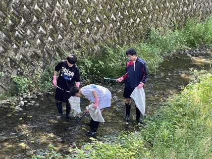 5月26日(日)に行われた安祥寺川のクリーン作戦に、男子バスケットボール部の2・3年生ががボランティアとして参加しました。