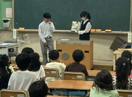 5月31日(金)文化図書委員会の生徒が校区の小学校に絵本・紙芝居の読み聞かせに行きました。各小学校では、1・2年生の学級で読み聞かせを行い、交流を深めました。小学生にとっても中学生にとっても、図書に関心をもち読書に親しむきっかけとなりました。