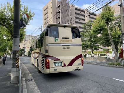 2台のバスに分乗し、ほぼ定刻の6時57分、京都駅に向けてバスが無事出発しました。