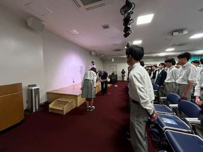 平和セレモニーでは、「平和へのメッセージ」を群読で発表し、学年合唱として「HEIWAの鐘」を歌いました。