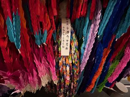 そして、学年みんなで平和への思いを込めて折った千羽鶴を寄贈しました。